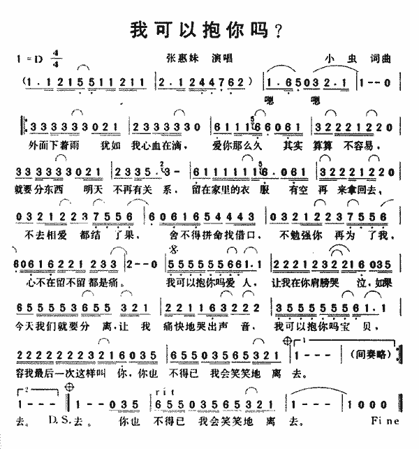 《我可以抱你吗》吉他谱 张惠妹 点这里