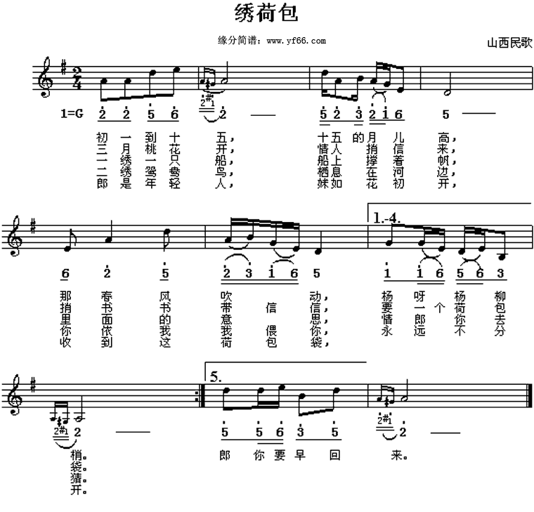 《绣荷包》简谱 山西民歌