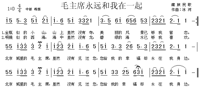 《毛主席永远和我在一起(藏族民歌)》简谱