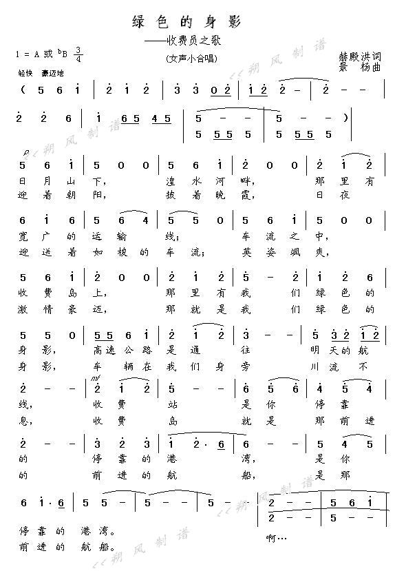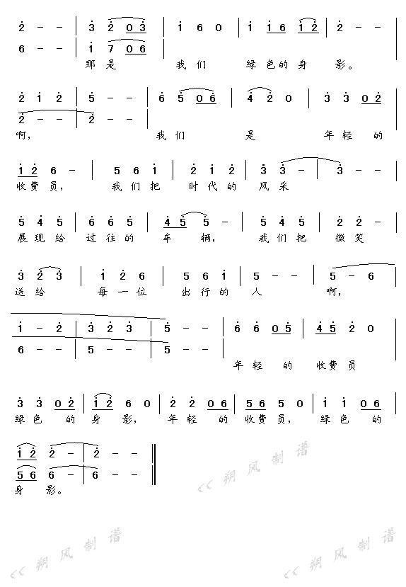 《绿色的身影----收费员之歌(女声齐唱)》简谱 青海高速