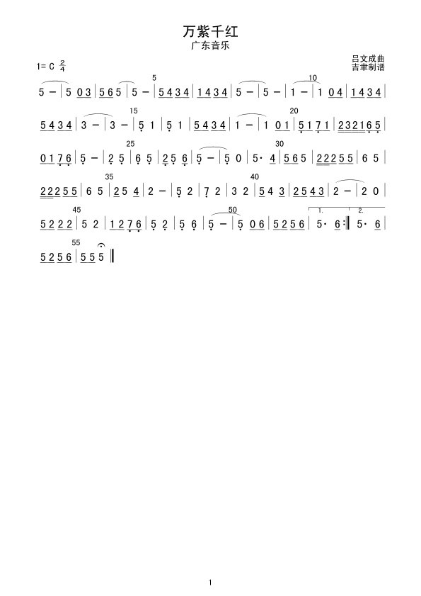 《万紫千红(广东音乐)》简谱