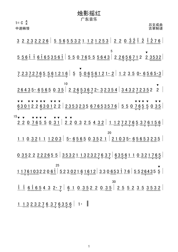 《烛影摇红(广东音乐)》简谱