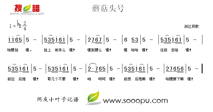 《蘑菇头号》简谱 浙江民歌