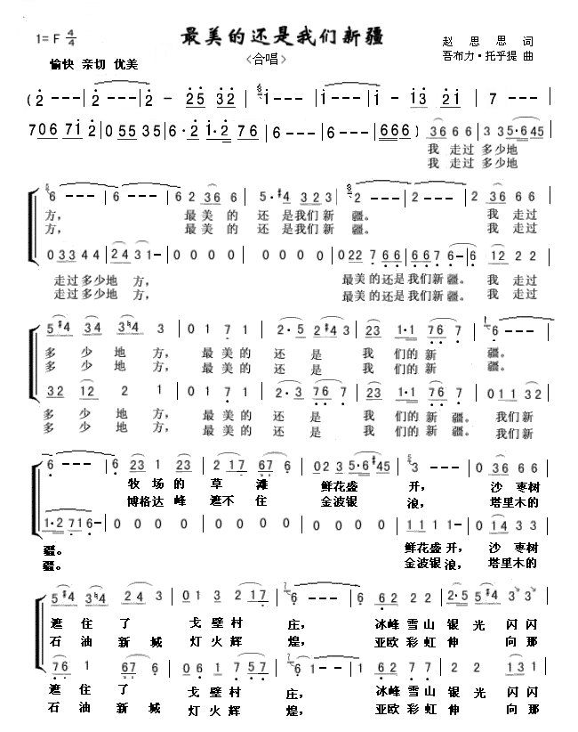 《最美的还是我们新疆(合唱)》简谱