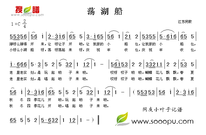 《荡湖船》简谱 江苏民歌