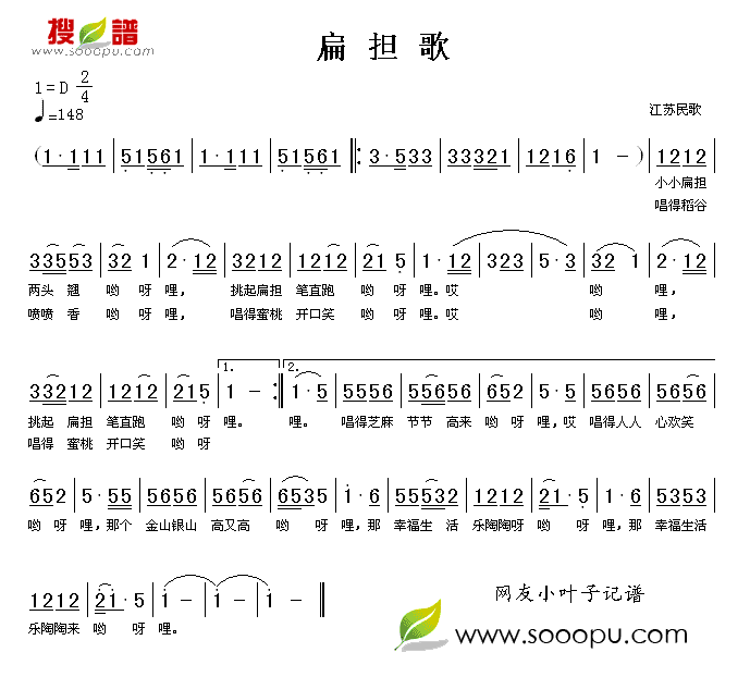 《扁担歌》简谱 江苏民歌
