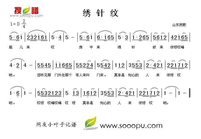 《绣针纹》简谱 山东民歌