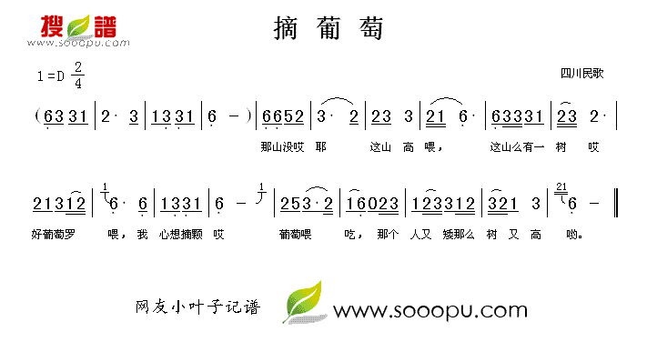 《摘葡萄》简谱 四川民歌