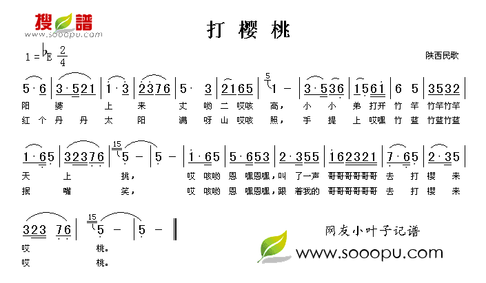 《打樱桃》简谱 陕西民歌