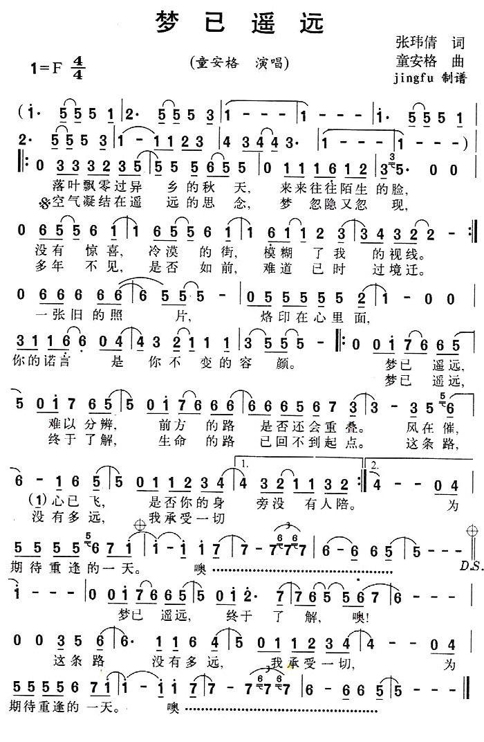 《梦已遥远》简谱 童安格