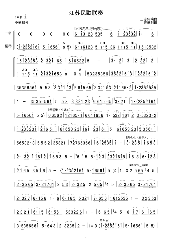 《江苏民歌联奏》简谱