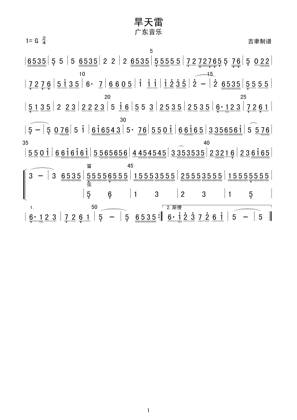 《旱天雷(广东音乐)》电子琴谱 点这里