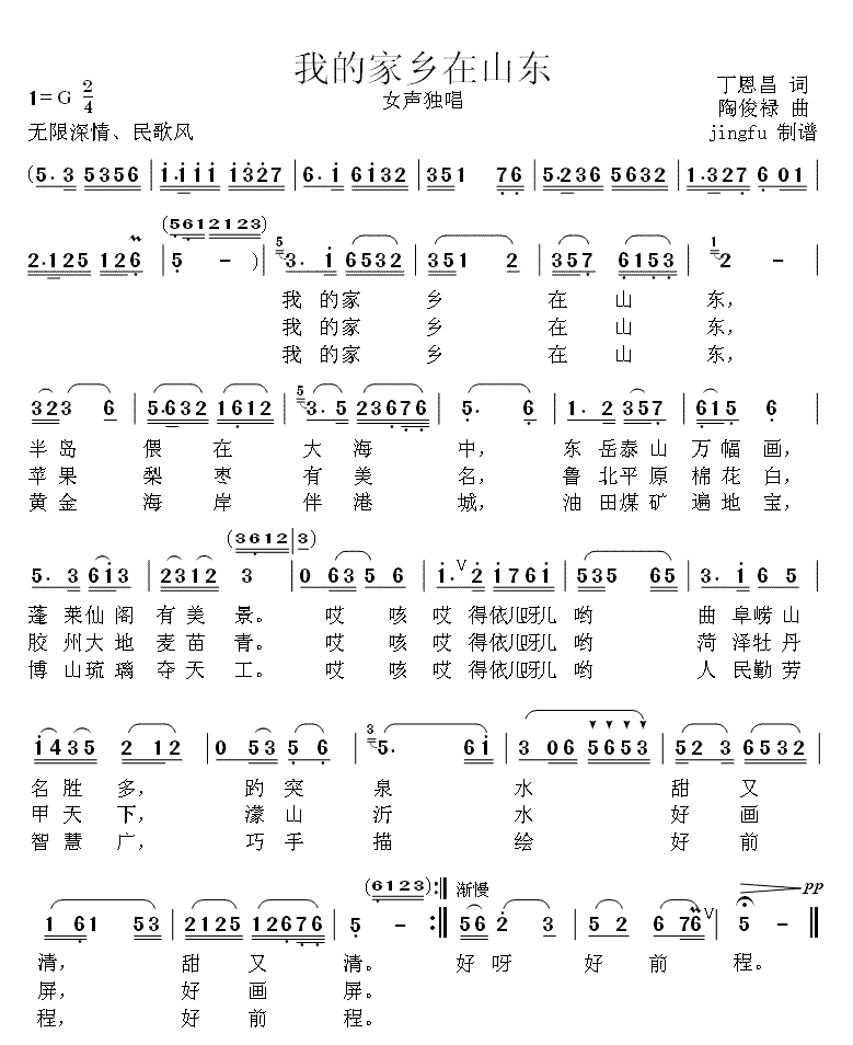 《我的家乡在山东(获奖歌曲)》简谱 任桂芳