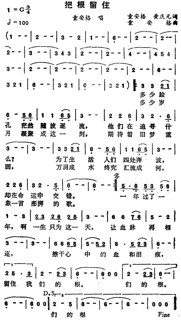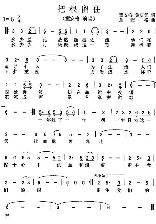 《把根留住》简谱 童安格