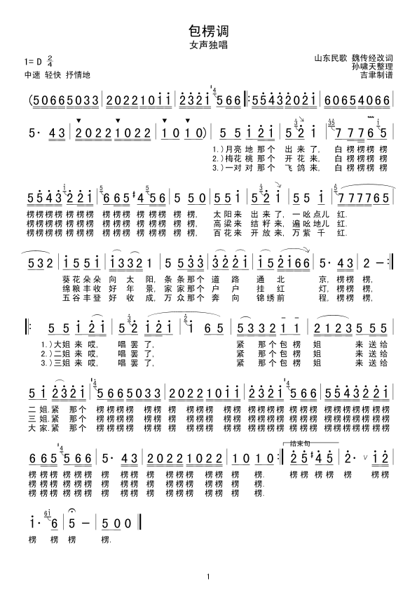 《包楞调(山东民歌)》简谱