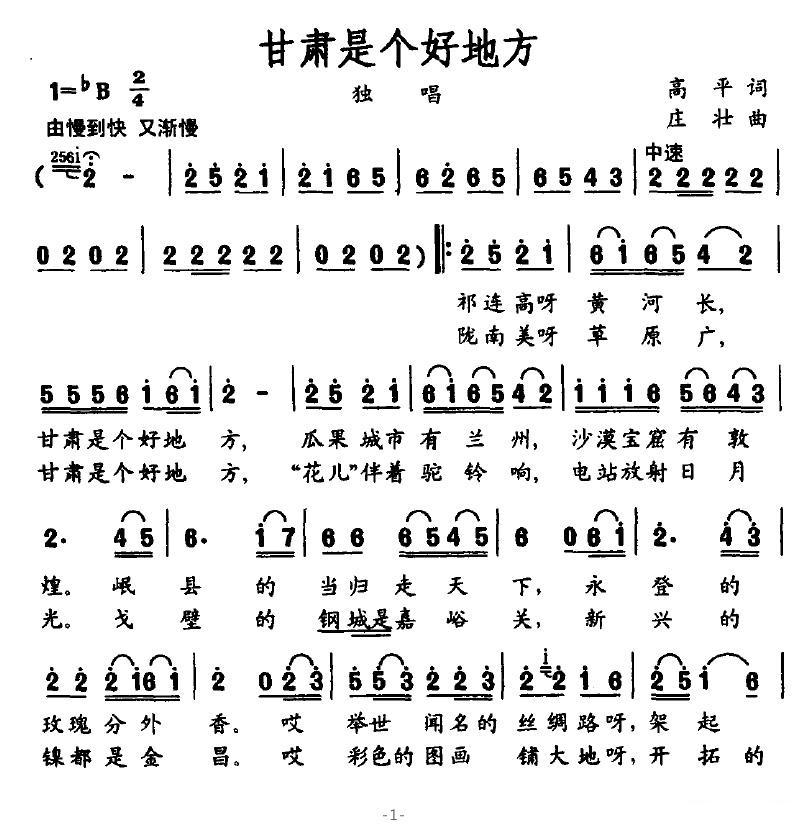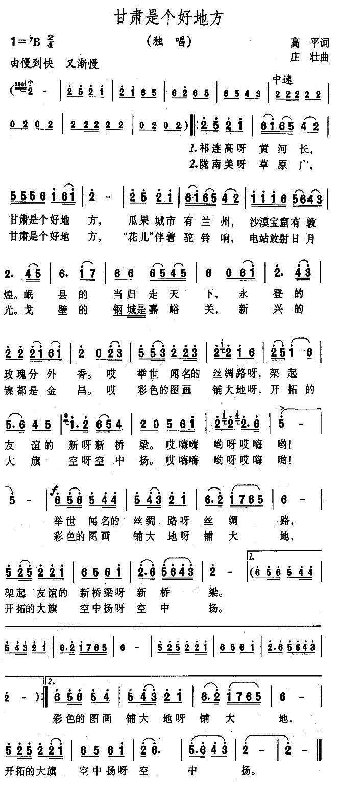 《甘肃是个好地方》简谱