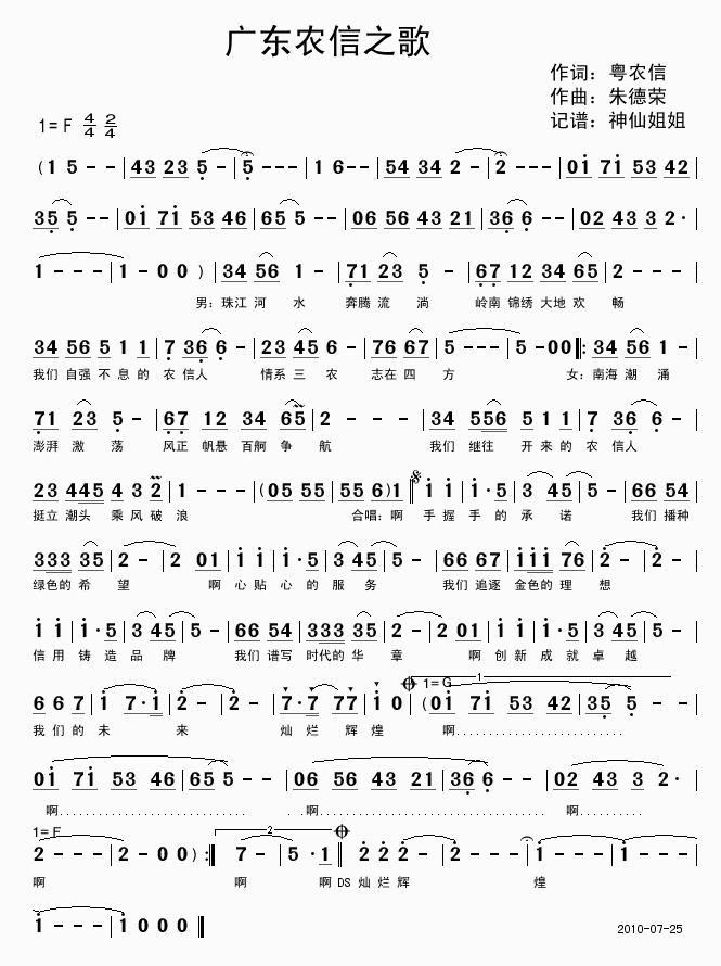 《广东农信之歌》简谱