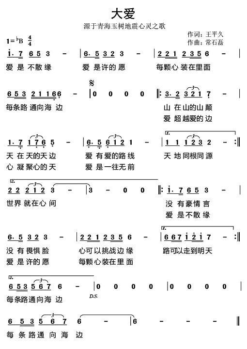 《大爱(源于青海玉树地震心灵之歌)》简谱