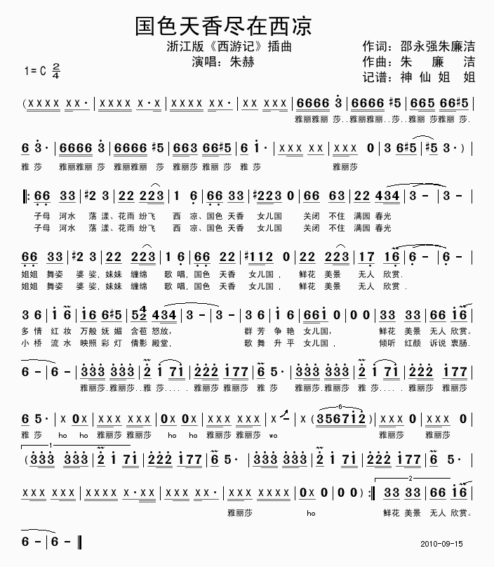 《国色天香尽在西凉 浙江版《西游记》插曲...》简谱 黑鸭子