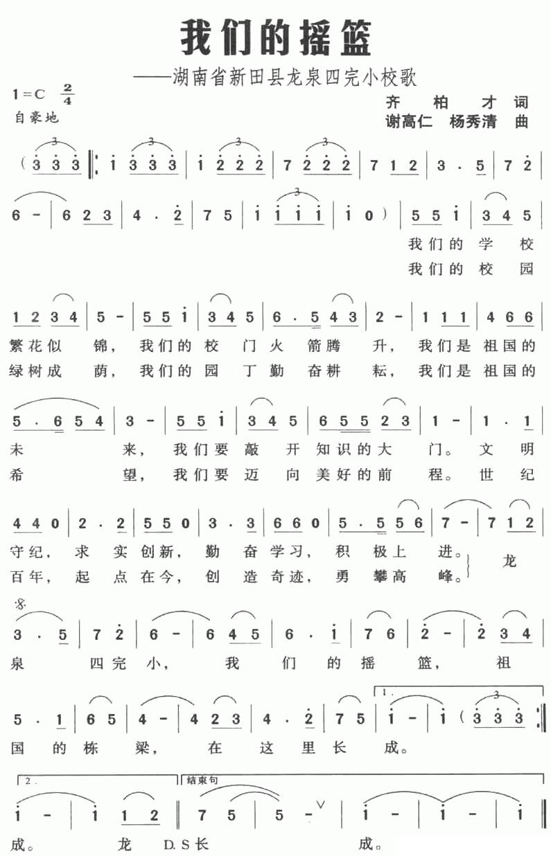 《我们的摇篮——湖南省新田县龙泉四完小校歌》简谱