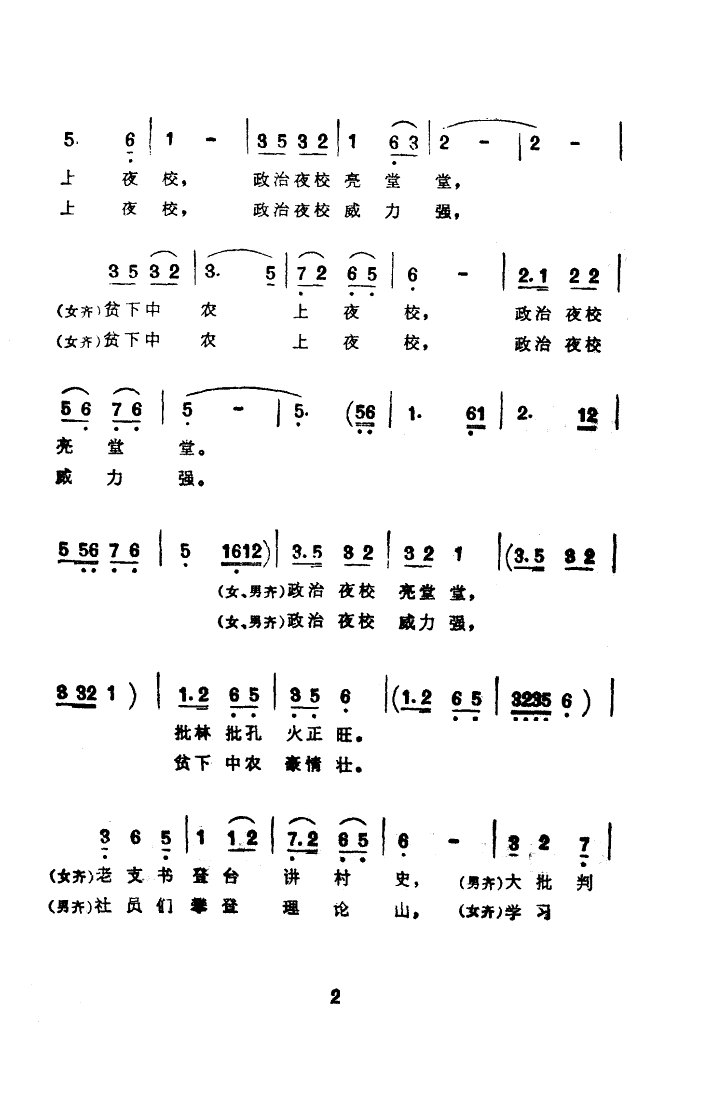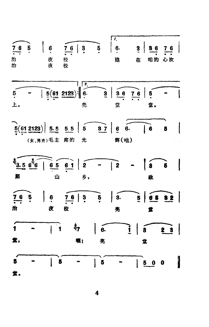 《政治夜校亮堂堂》简谱 张培兰领唱 吉林省歌舞团