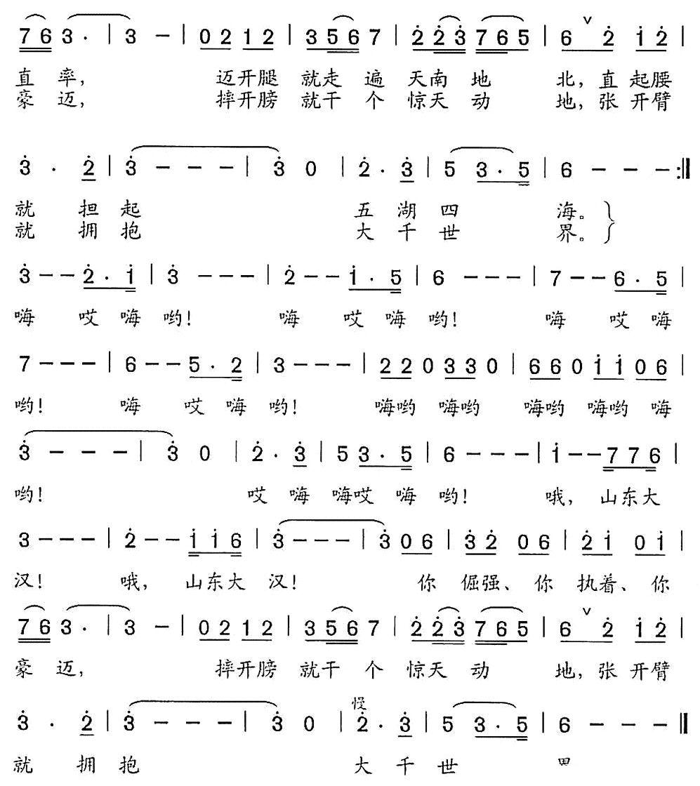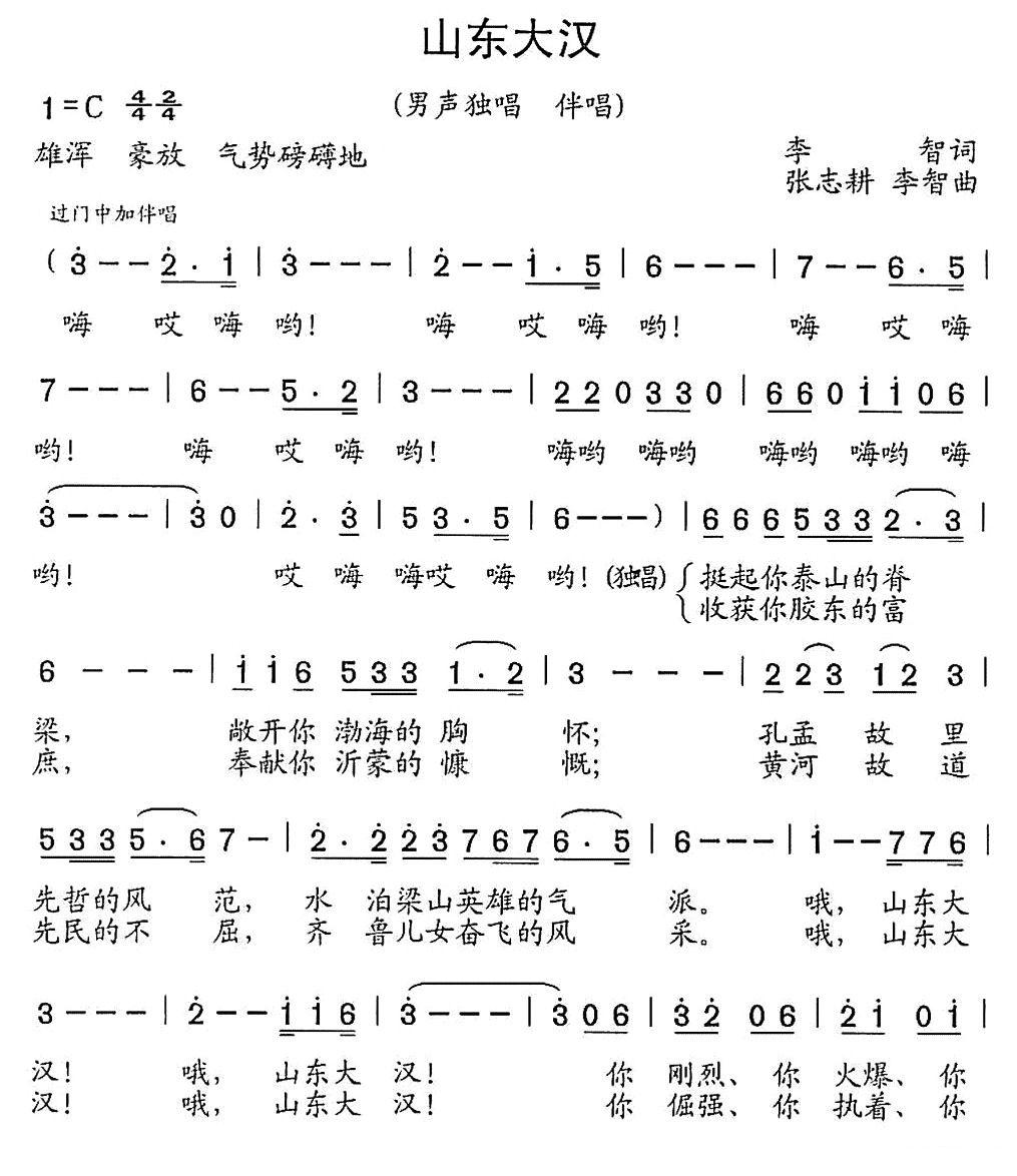 《山东大汉(李智词 张志耕 李智曲)》简谱