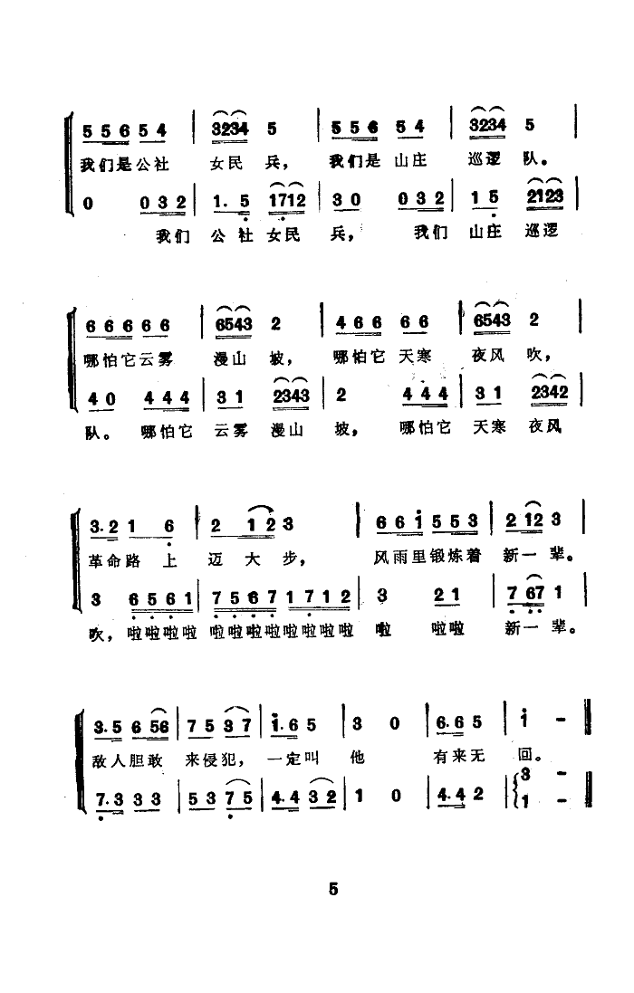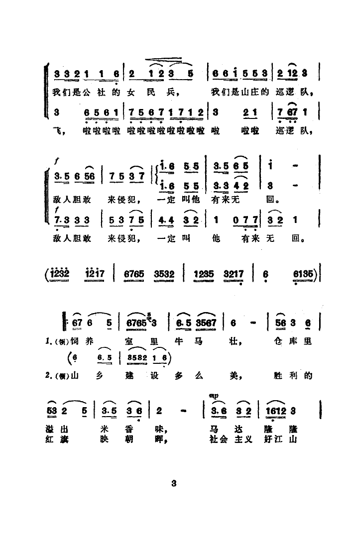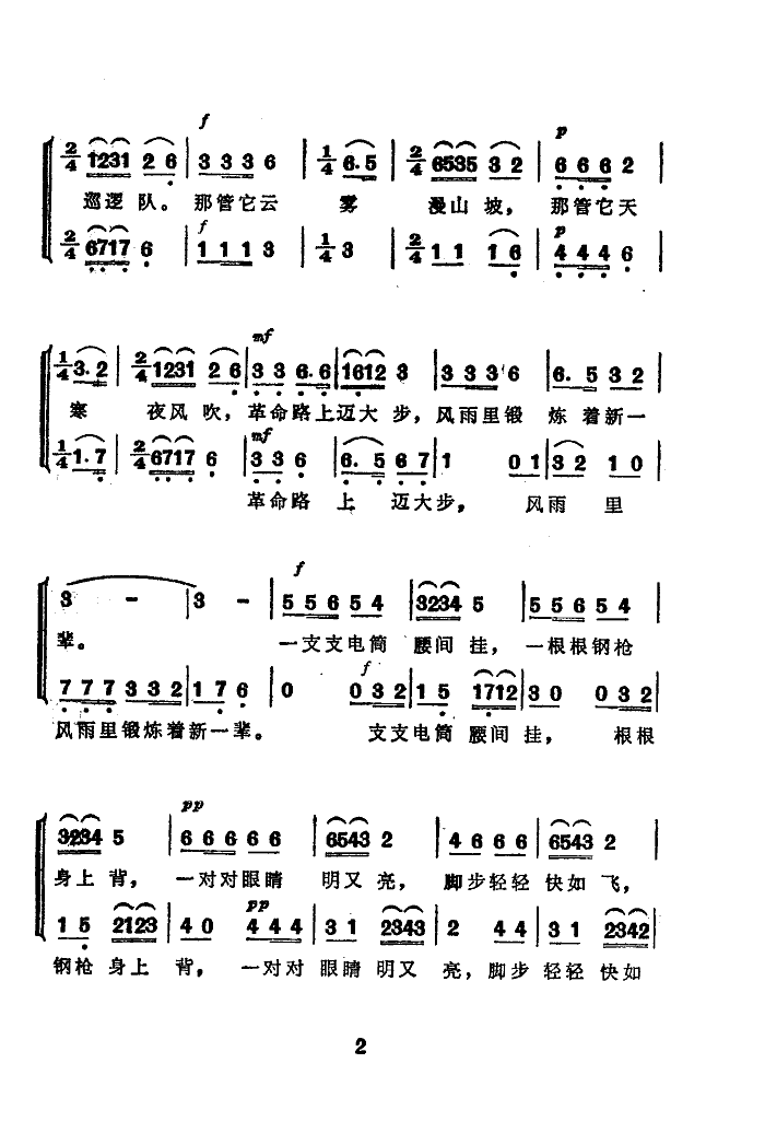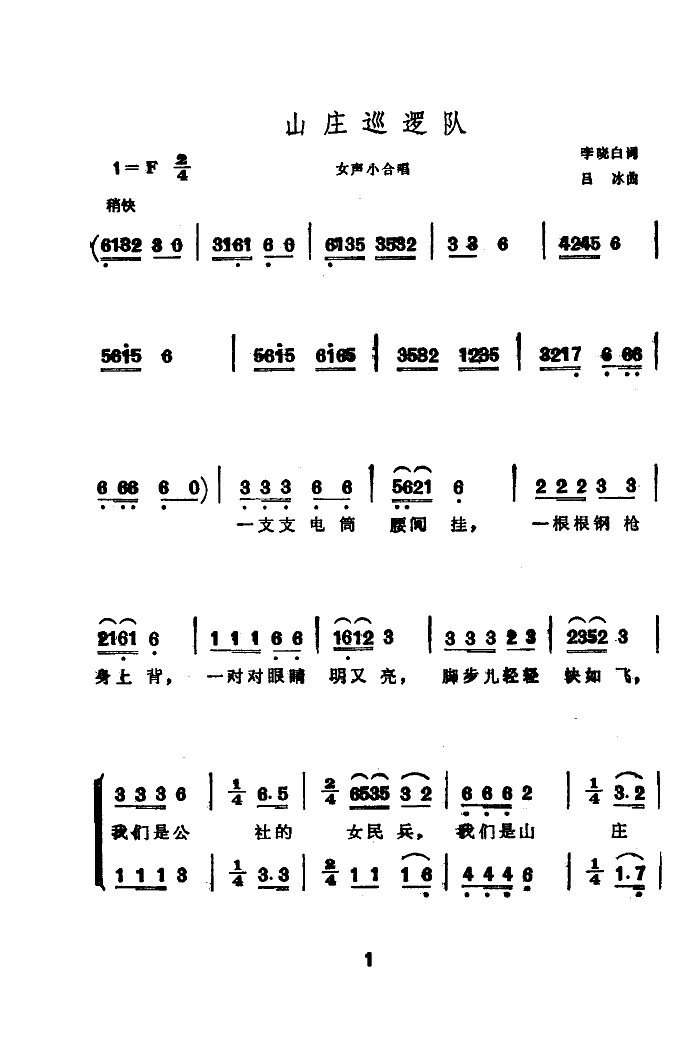 《山庄巡逻队》简谱 雷茨宇领唱 陕西歌舞剧院