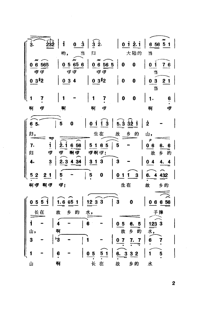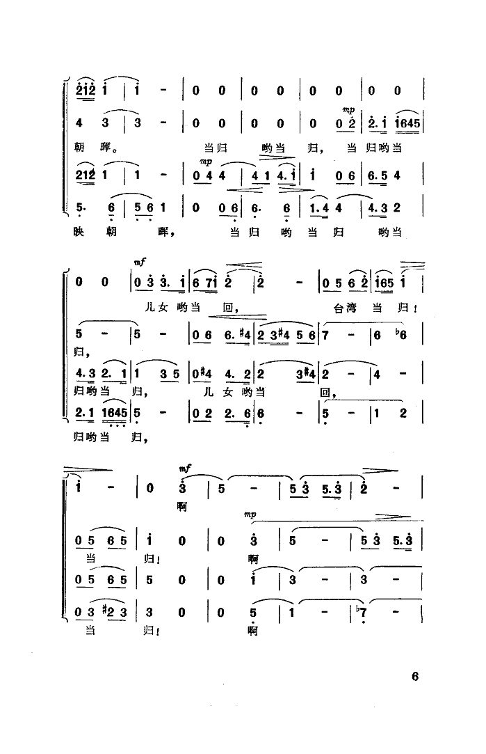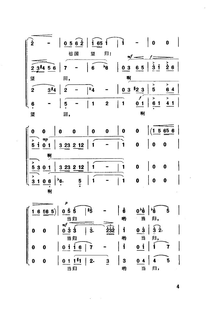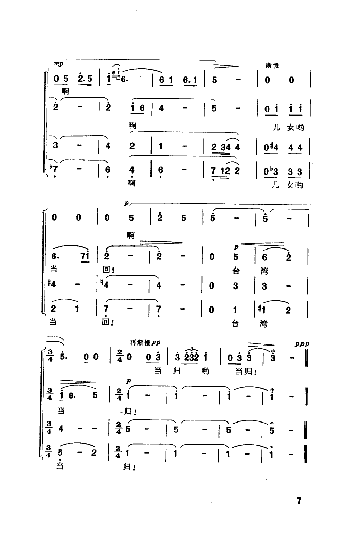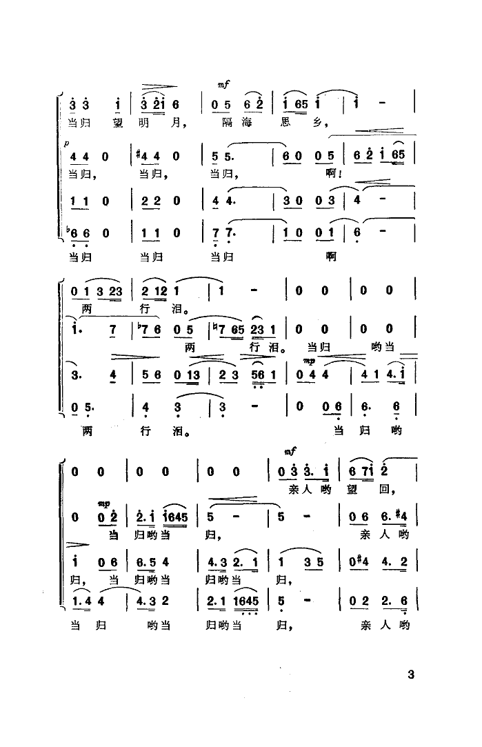 《台湾当归谣(男声四重唱)》简谱 杨焕礼 吴其辉 王世光 贾宗昌