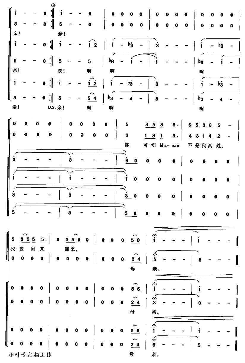 《七子之歌----澳门(合唱谱)》简谱 合唱