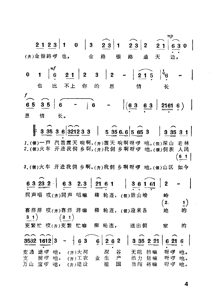 《喜迎火车进侗乡》简谱 广西歌舞团