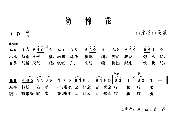 《纺棉花(山东苍山民歌)》简谱 韦有琴