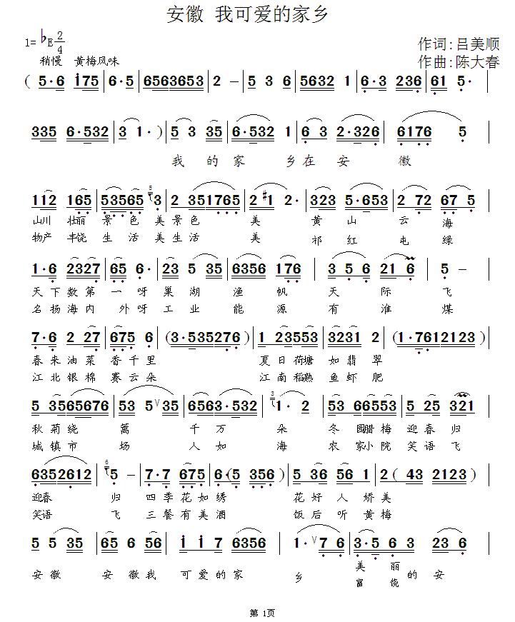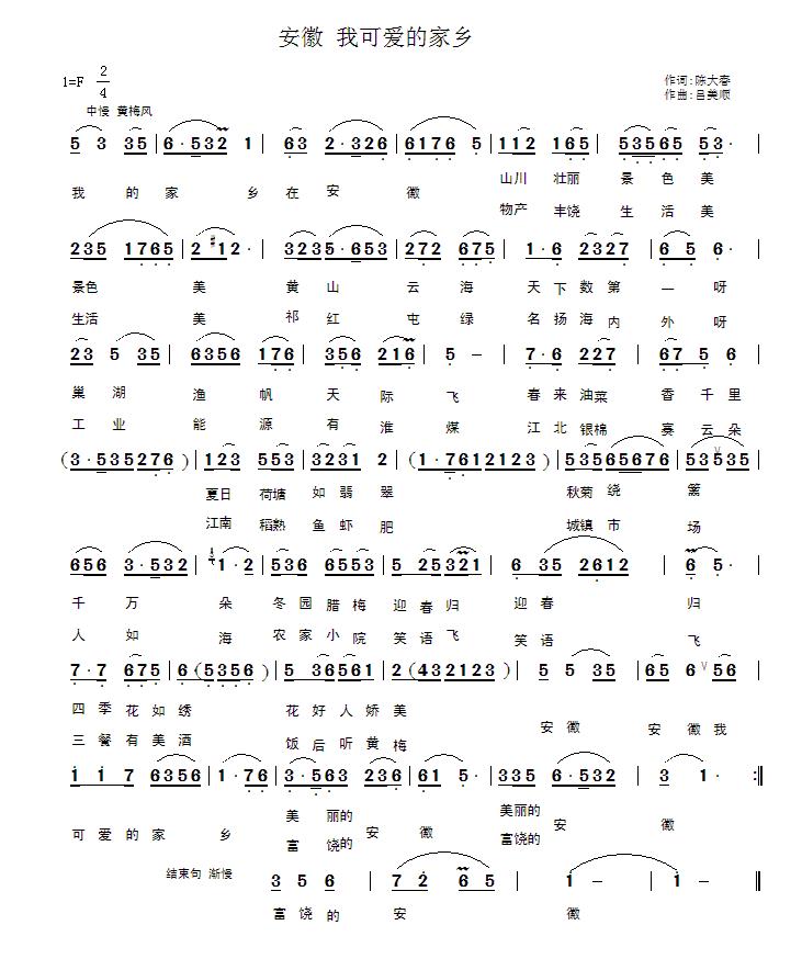 《安徽 我可爱的家乡(吕美顺词 陈大春曲)》简谱