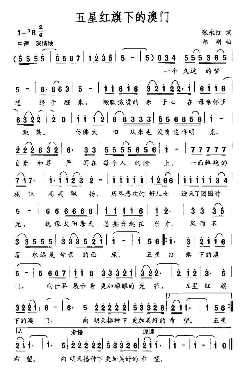 《五星红旗下的澳门》简谱