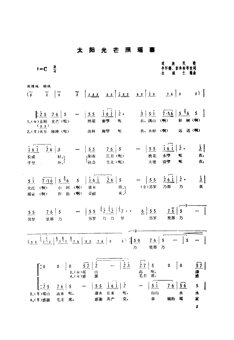 《太阳光芒照瑶寨(扫描谱)》简谱 湖南省歌舞团
