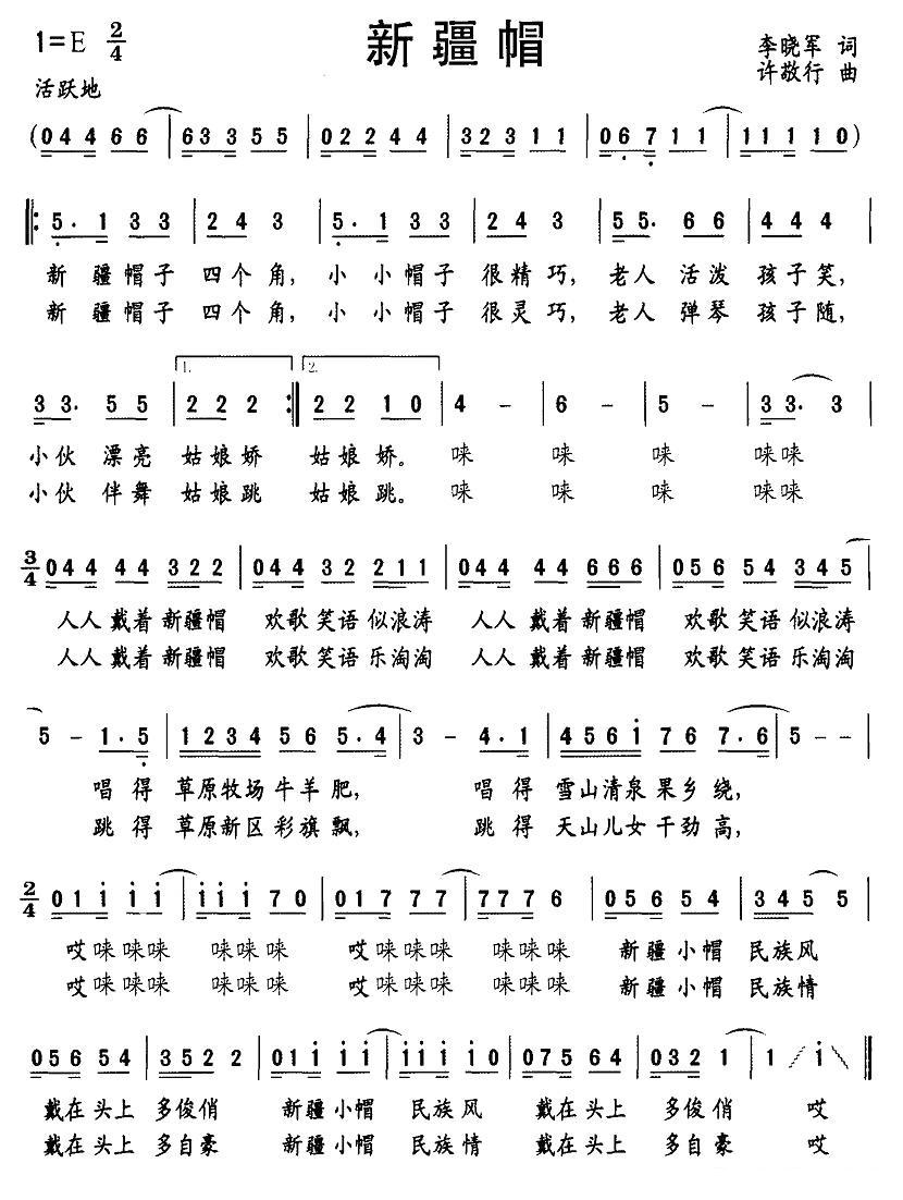 《新疆帽(李晓军词 许敬行曲)》简谱