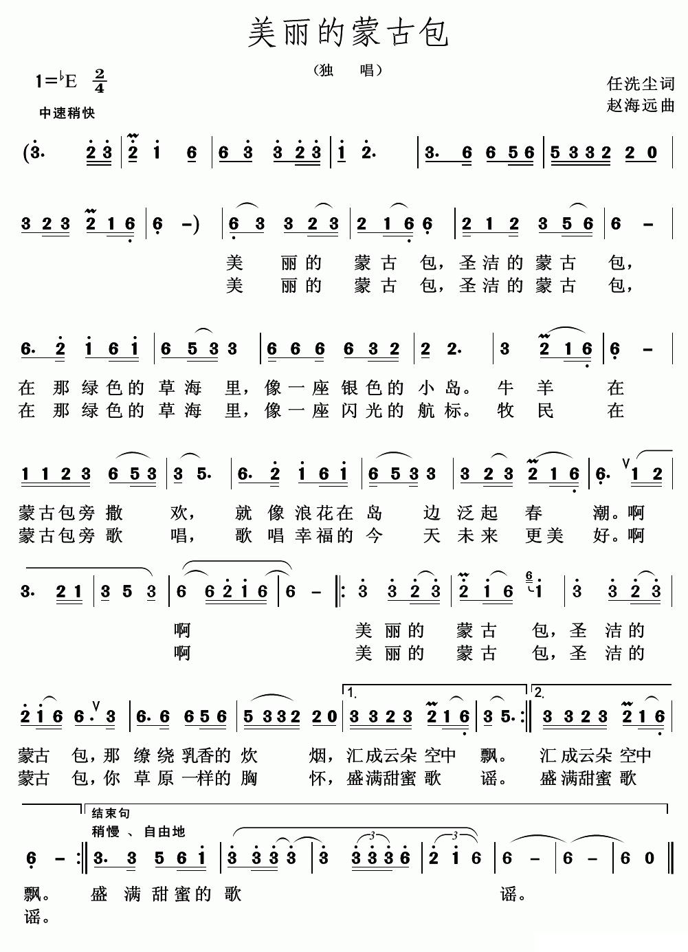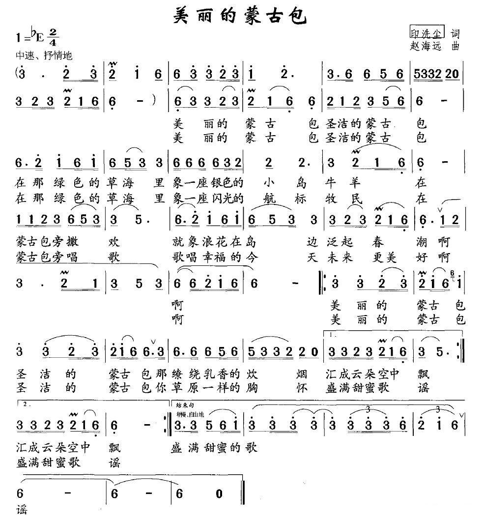 《美丽的蒙古包(印洗尘词 赵海远曲)》简谱 朱永飞
