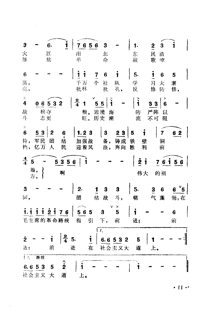 《前进在社会主义大道上》简谱 江西省歌舞团