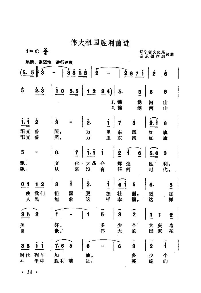 《伟大祖国胜利前进》简谱 辽宁省歌舞团