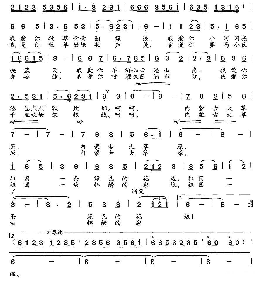 《美丽的内蒙古大草原》简谱