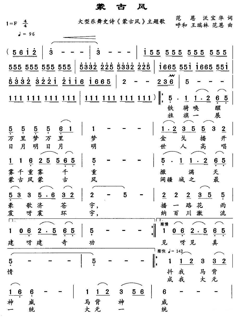《蒙古风(大型乐舞史诗歌《蒙古风》主题歌)》简谱