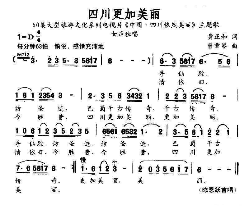 《四川更加美丽(电视片《中国·四川依然美丽》主题歌)》简谱