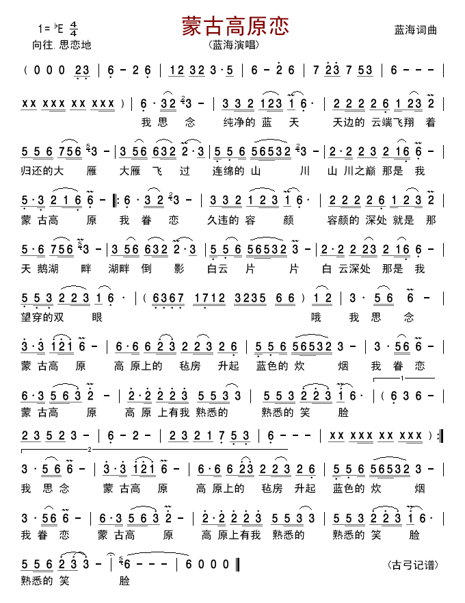 爱在蒙古高原 三拍版-燕尾蝶 邰景坤作曲