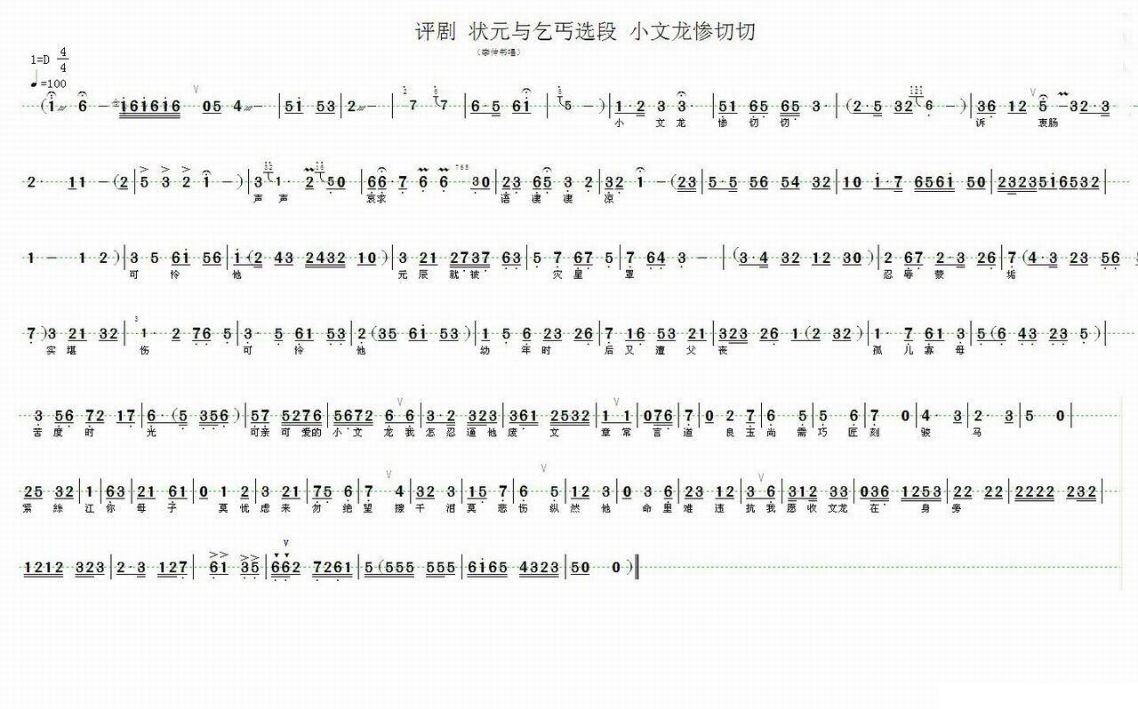 《小文龙惨切切(《状元与乞丐 选段)》简谱 河北省、衡水市 评剧团乐队