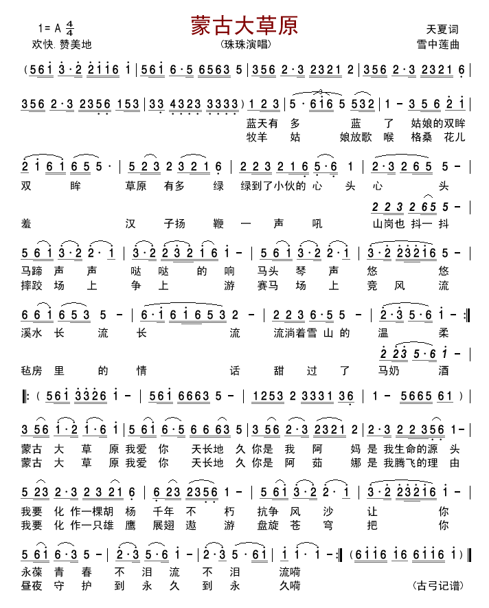 爱在蒙古高原 三拍版-燕尾蝶 邰景坤作曲
