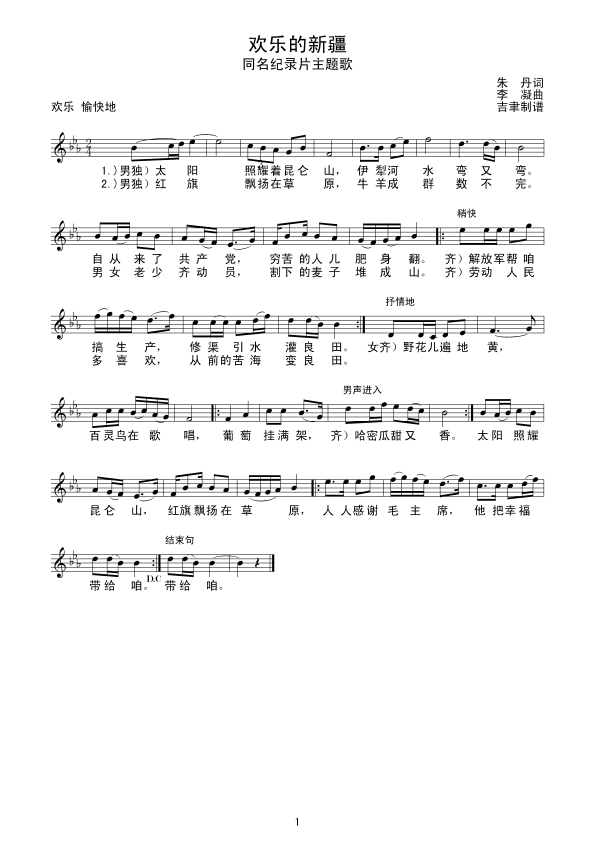 《欢乐的新疆(线谱)》简谱