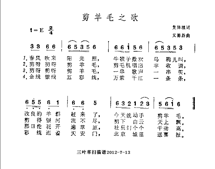 《剪羊毛之歌》简谱 内蒙古新歌合唱团