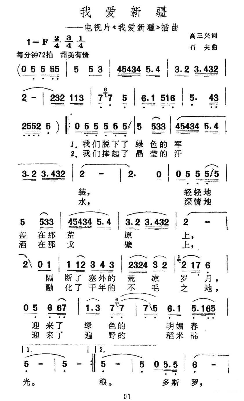 《我爱新疆(电视片《我爱新疆》插曲)》简谱