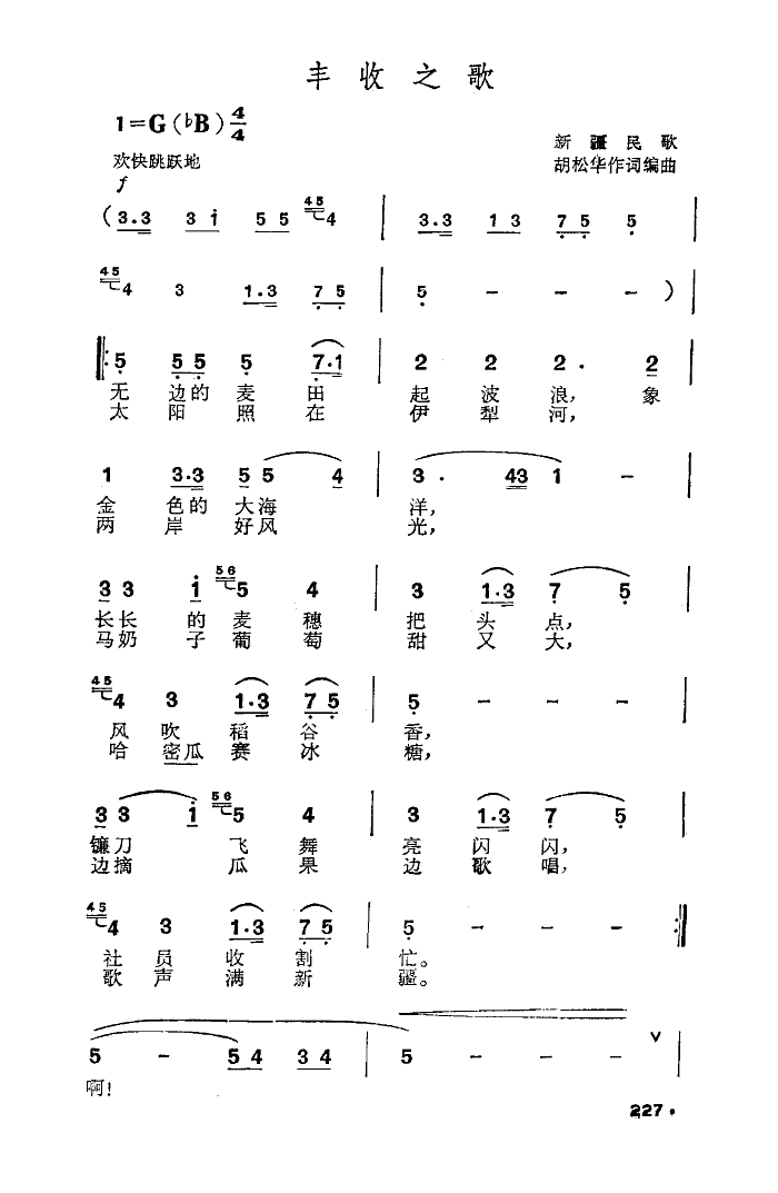 《丰收之歌(新疆民歌)》简谱 胡松华