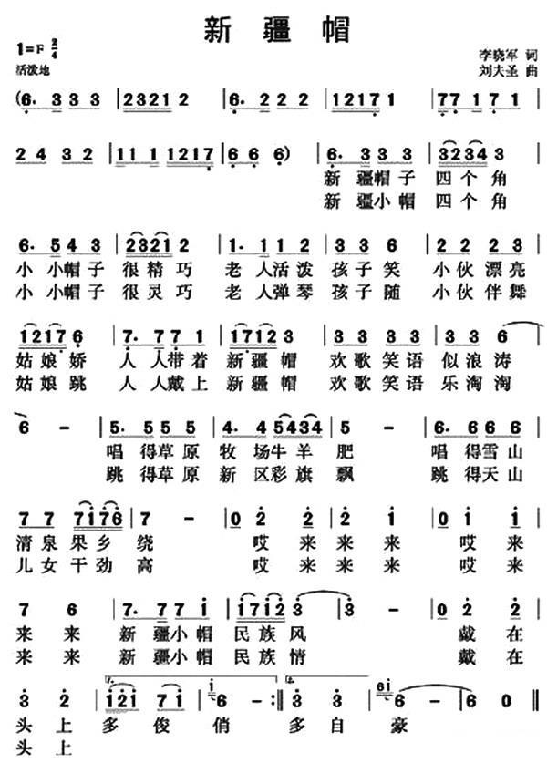 《新疆帽(李晓军词 刘大圣曲)》简谱