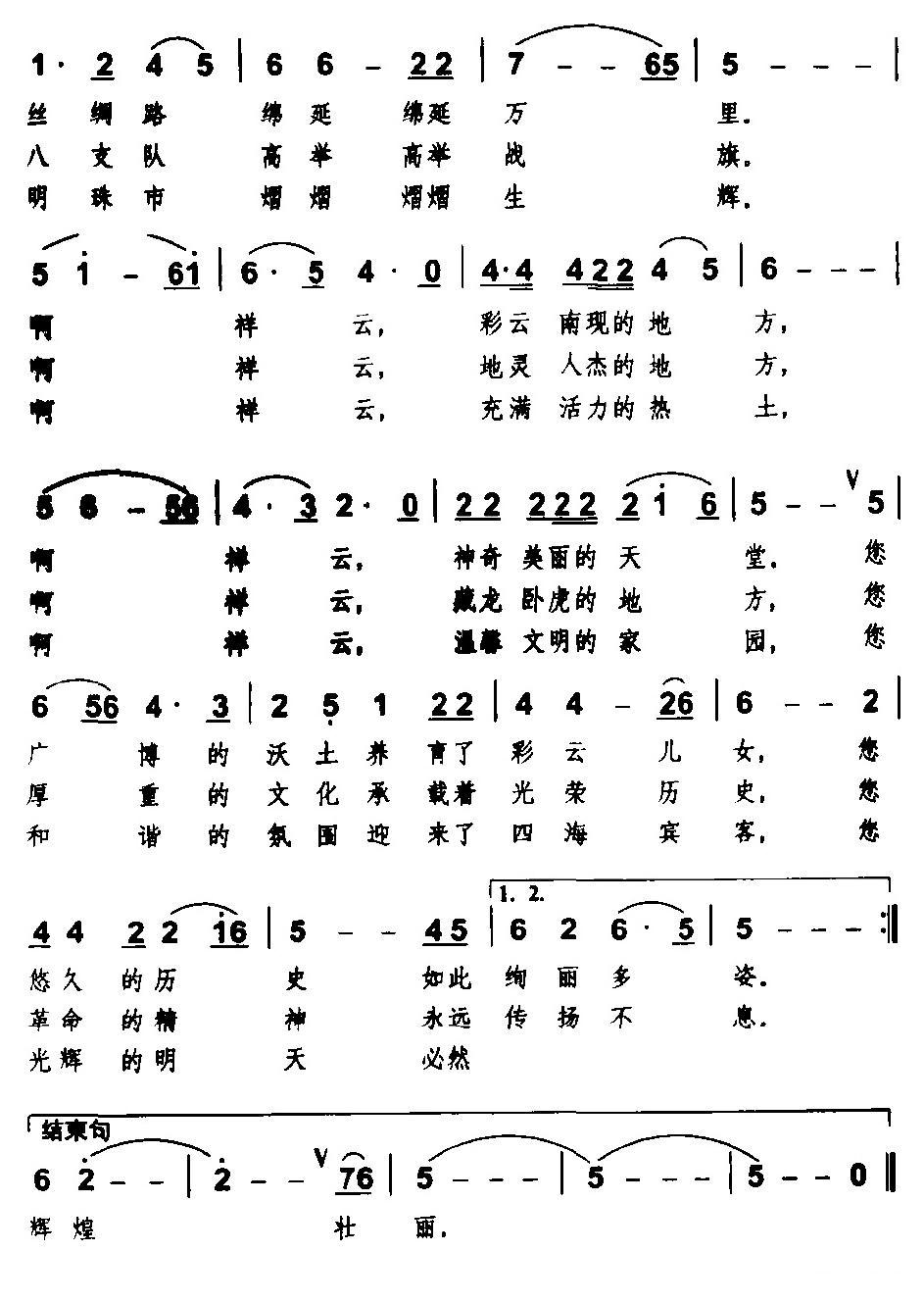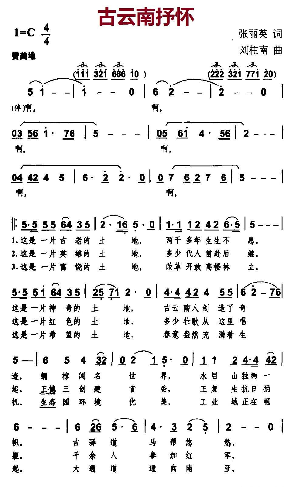 《古云南抒怀》简谱
